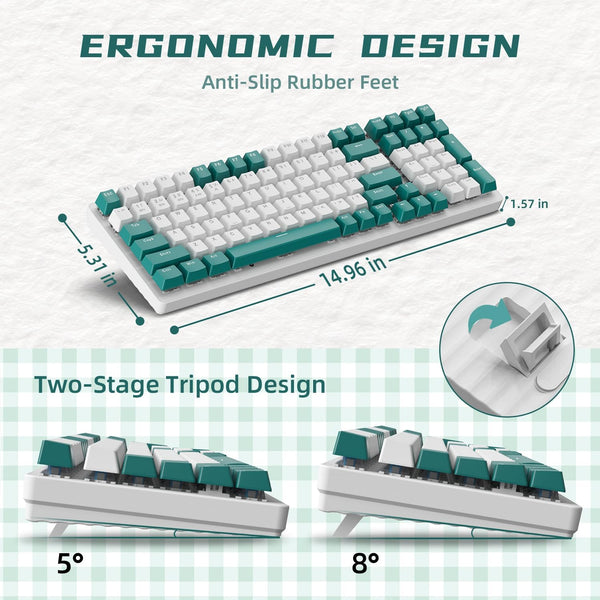 Featuring a Compact 96% Layout and 100 anti-ghosting keys, this keyboard offers the ultimate gaming experience for gamers, typists, and office workers alike. Made with durable and high-quality TPU materials, it ensures long-lasting performance.